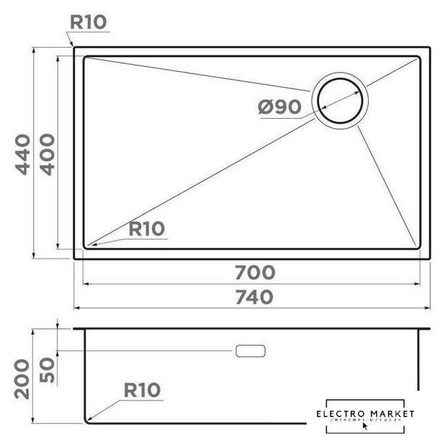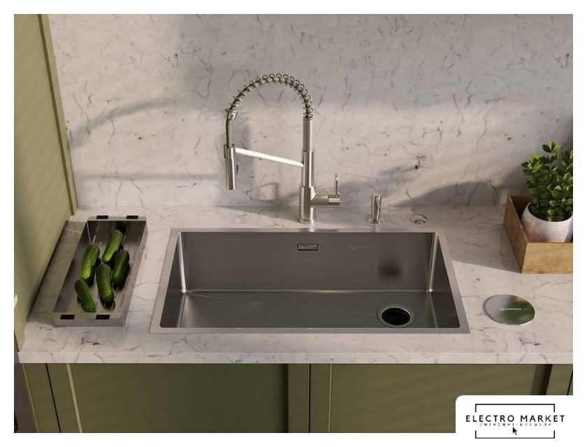 врезная на столешницу/врезная под столешницу/врезная вровень со столешницей, нержавеющая сталь, размеры: 74x44 см, глубина чаши: 20 см, в шкаф шириной от 80 см