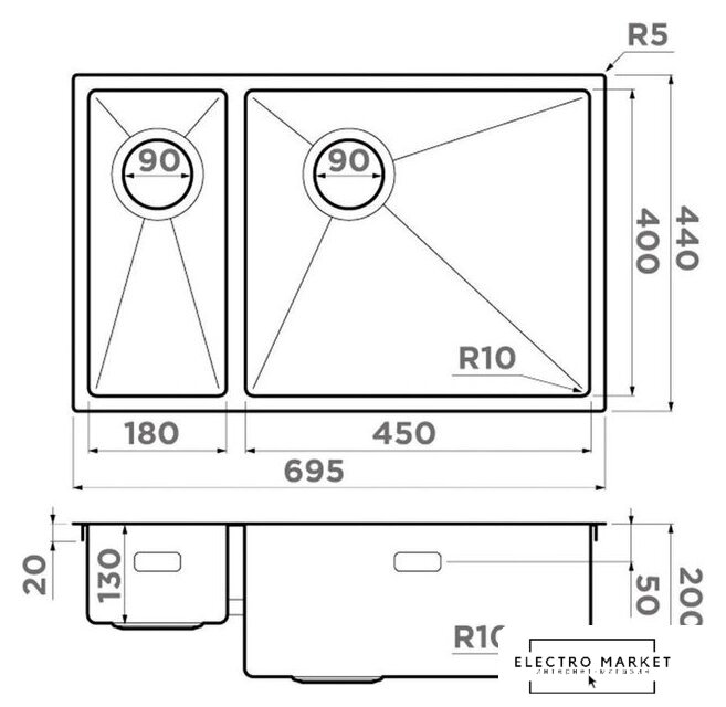 Способ установки | врезная на столешницу, врезная под столешницу, врезная вровень со столешницей |