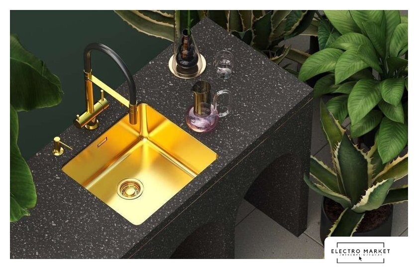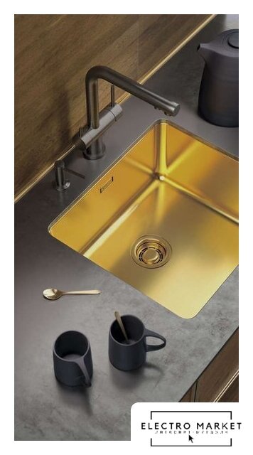 врезная на столешницу/врезная под столешницу/врезная вровень со столешницей, нержавеющая сталь, фактура: с текстурой, размеры: 38x44 см, глубина чаши: 20 см, в шкаф шириной от 40 см, клапан-автомат
