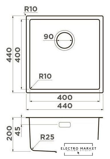 врезная на столешницу/врезная под столешницу, нержавеющая сталь, размеры: 54x44 см, глубина чаши: 20 см, в шкаф шириной от 60 см