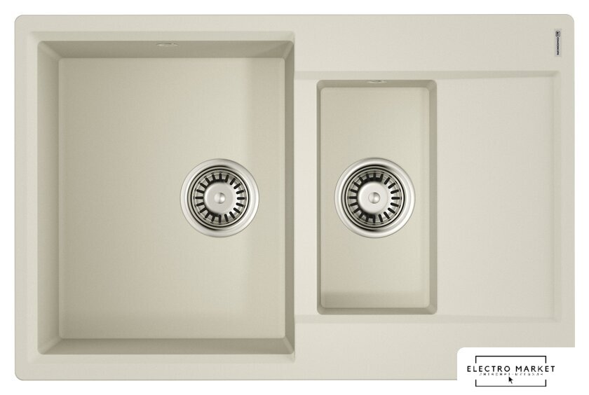 врезная на столешницу, искусственный камень, размеры: 78x50 см, глубина чаши: 20 см, в шкаф шириной от 60 см, клапан-автомат