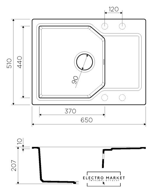 врезная на столешницу, искусственный камень, размеры: 65x51 см, в шкаф 45 см