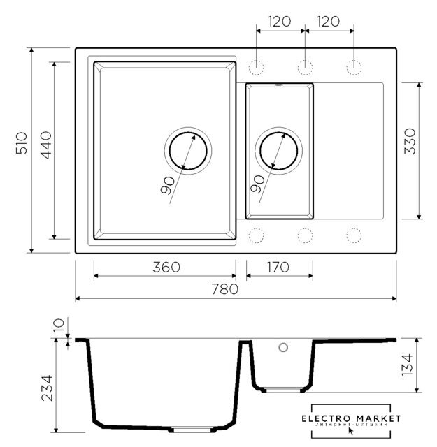 врезная на столешницу, искусственный камень, размеры: 78x50 см, глубина чаши: 20 см, в шкаф шириной от 60 см, клапан-автомат