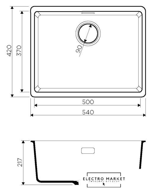 врезная на столешницу, нержавеющая сталь, фактура: матовая, размеры: 48x58 см, глубина чаши: 21 см
