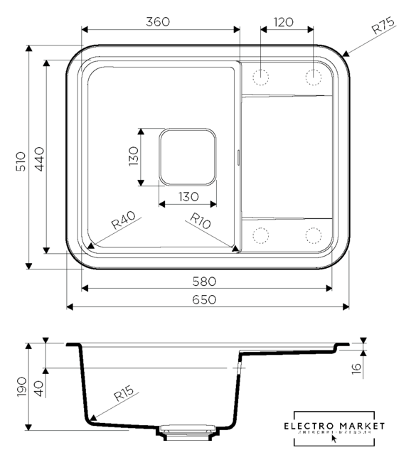 Ширина мойки | 65 см |