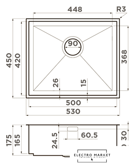 врезная под столешницу/интегрированный, нержавеющая сталь, размеры: 53x45 см, в шкаф 60 см