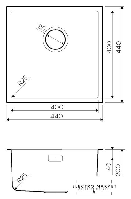 врезная под столешницу, нержавеющая сталь, размеры: 44x44 см, глубина чаши: 20 см, в шкаф шириной от 50 см
