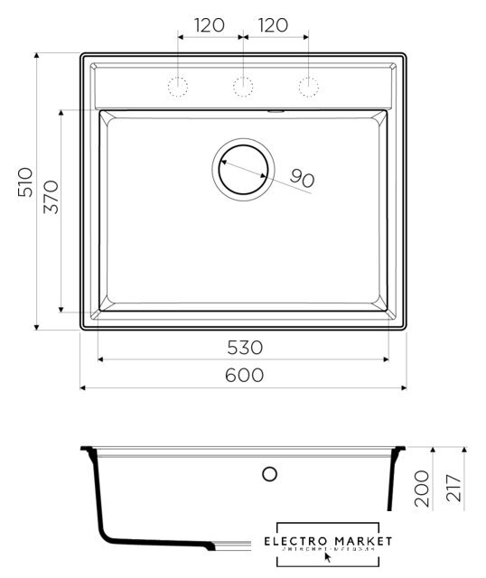 врезная на столешницу, искусственный камень, размеры: 60x51 см, глубина чаши: 20 см, в шкаф шириной от 60 см