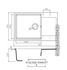 врезная на столешницу, искусственный камень, размеры: 78x51 см, в шкаф 60 см