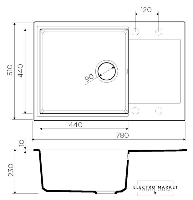 врезная на столешницу, искусственный камень, размеры: 78x51 см, в шкаф 60 см