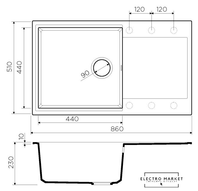 врезная на столешницу, искусственный камень, размеры: 86x51 см, в шкаф 60 см