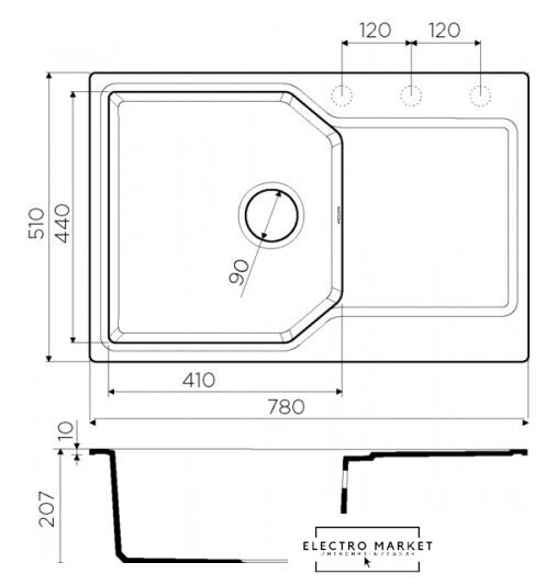 врезная на столешницу, искусственный камень, размеры: 78x51 см, в шкаф 50 см