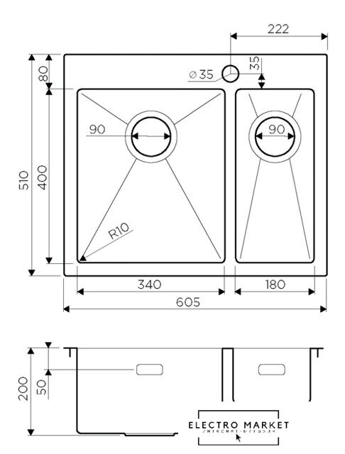 Способ установки | врезная под столешницу, врезная вровень со столешницей |
