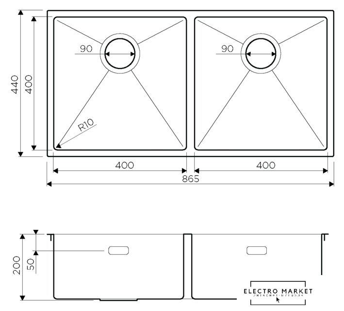 врезная на столешницу/врезная под столешницу/врезная вровень со столешницей, нержавеющая сталь, размеры: 86.5x44 см, в шкаф 90 см