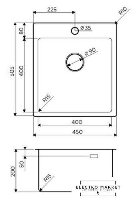 врезная на столешницу, искусственный камень, размеры: 60x51 см, глубина чаши: 20 см, в шкаф шириной от 60 см