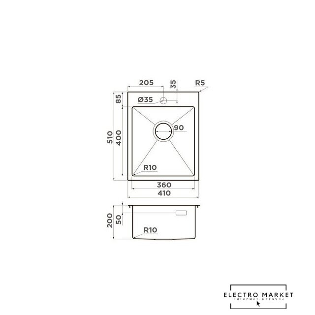 врезная под столешницу/интегрированный, нержавеющая сталь, размеры: 54x44 см, глубина чаши: 17.5 см, в шкаф шириной от 60 см