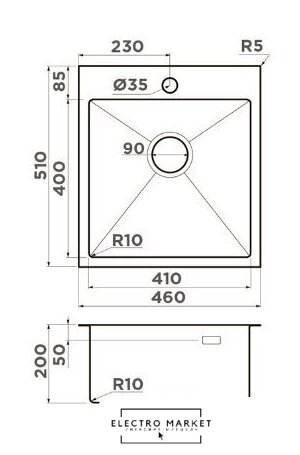 врезная на столешницу/врезная под столешницу/врезная вровень со столешницей, нержавеющая сталь, фактура: матовая, размеры: 44x44 см, глубина чаши: 20 см, в шкаф шириной от 45 см