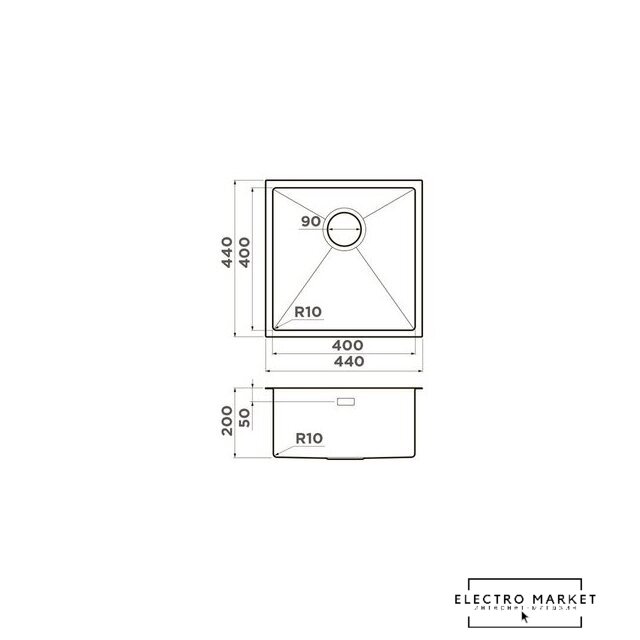 врезная на столешницу/врезная под столешницу/врезная вровень со столешницей, нержавеющая сталь, размеры: 44x44 см, в шкаф 45 см