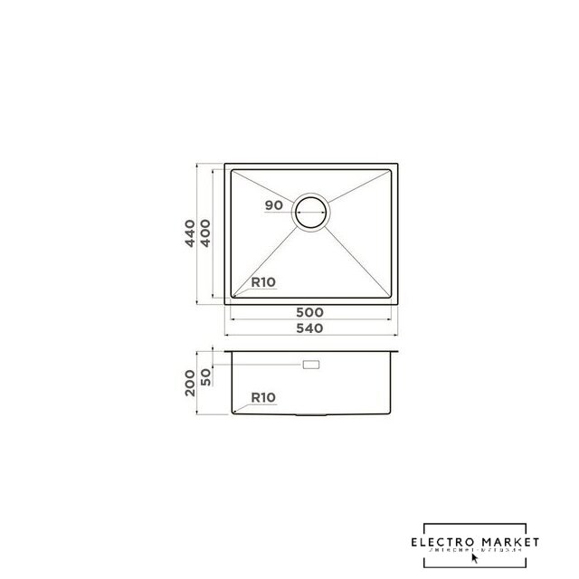 врезная на столешницу/врезная под столешницу/врезная вровень со столешницей, нержавеющая сталь, размеры: 54x44 см, в шкаф 60 см