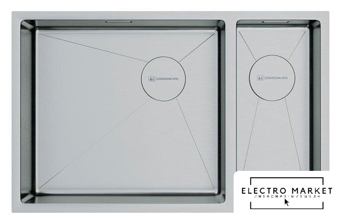 врезная на столешницу/врезная под столешницу/врезная вровень со столешницей, нержавеющая сталь, размеры: 69.5x44 см, в шкаф 80 см