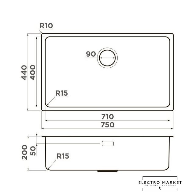 врезная на столешницу/врезная под столешницу, нержавеющая сталь, размеры: 44x54 см, глубина чаши: 20 см, в шкаф шириной от 60 см