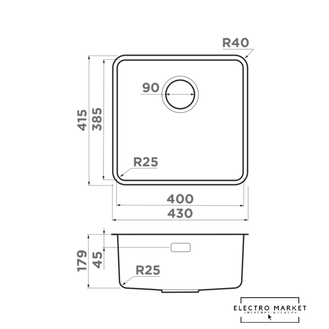 врезная на столешницу/врезная под столешницу, нержавеющая сталь, размеры: 43x41.5 см, в шкаф 45 см