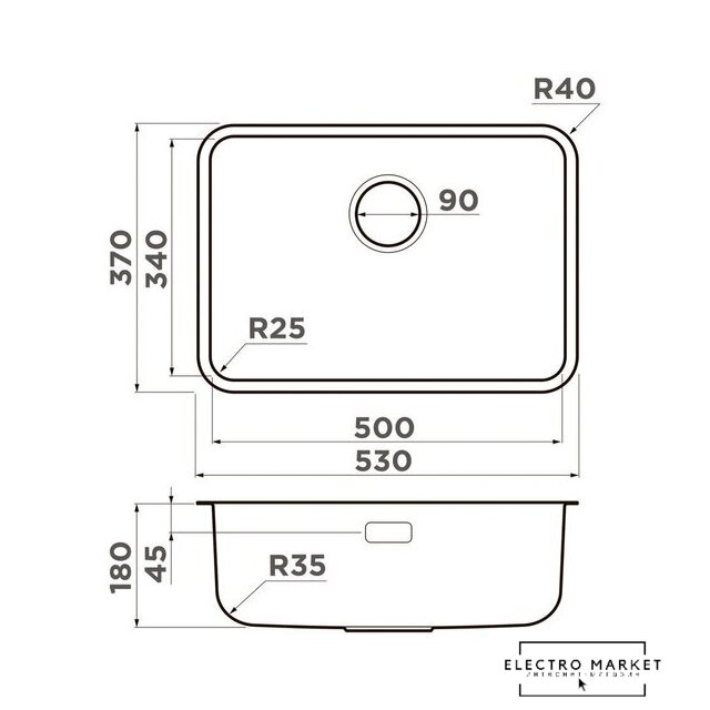 врезная на столешницу/врезная под столешницу, нержавеющая сталь, размеры: 53x37 см, в шкаф 60 см
