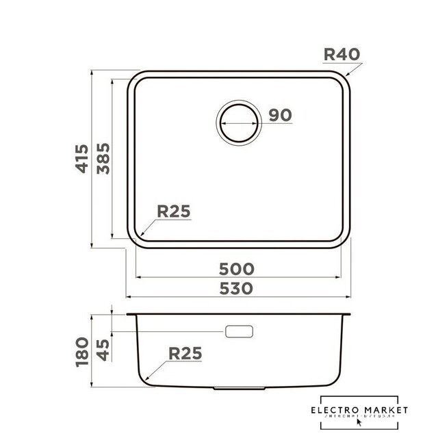 врезная на столешницу/врезная под столешницу, нержавеющая сталь, размеры: 53x41 см, в шкаф 60 см
