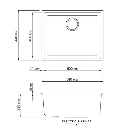 врезная на столешницу/врезная под столешницу/врезная вровень со столешницей, нержавеющая сталь, размеры: 48x44 см, глубина чаши: 20 см, в шкаф шириной от 50 см