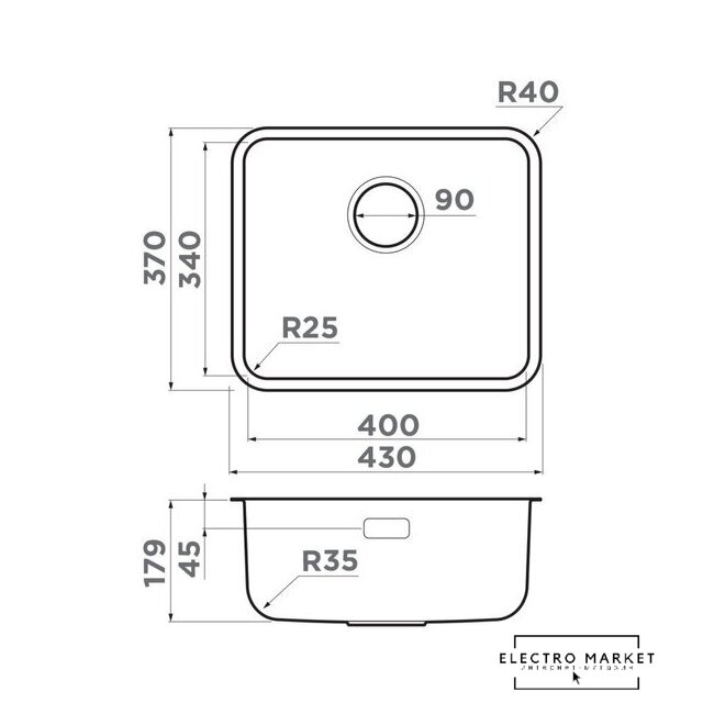 врезная на столешницу/врезная под столешницу, нержавеющая сталь, размеры: 43x37 см, в шкаф 45 см