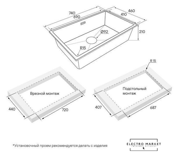 Способ установки | врезная на столешницу, врезная под столешницу, врезная вровень со столешницей |
