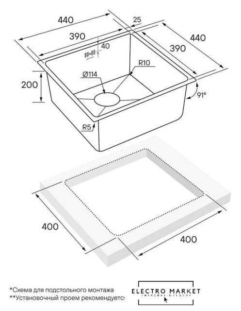 врезная на столешницу/врезная под столешницу, нержавеющая сталь, фактура: матовая, размеры: 49x44 см, глубина чаши: 18 см, в шкаф шириной от 60 см