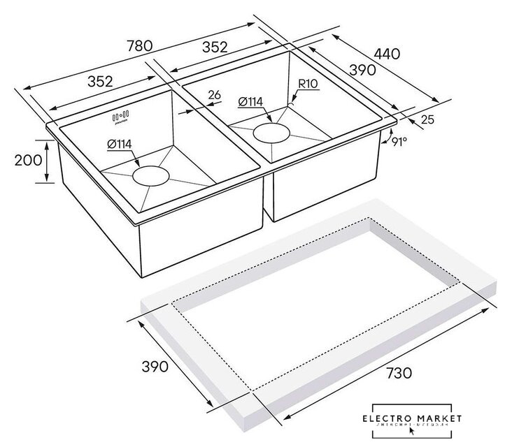Способ установки | врезная на столешницу, врезная вровень со столешницей |
