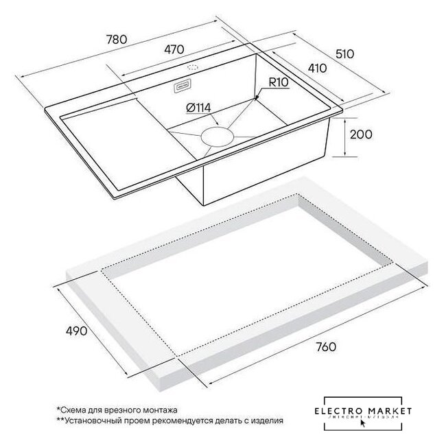 Способ установки | врезная на столешницу |