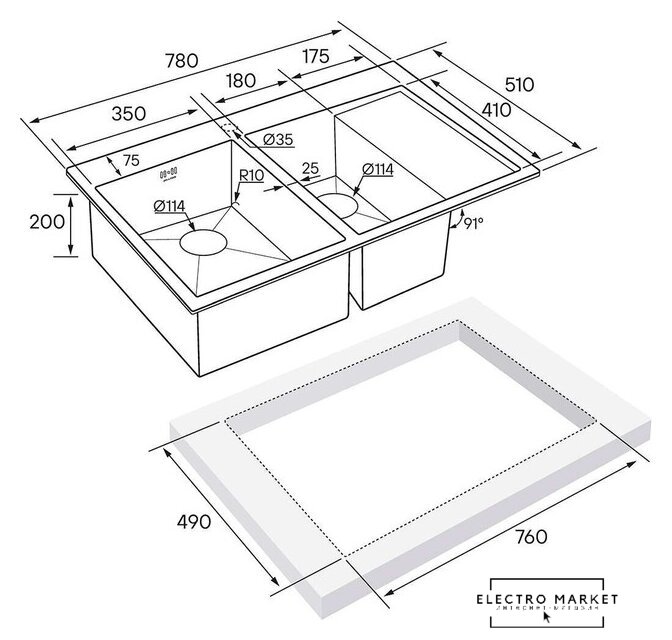 Способ установки | врезная на столешницу, врезная под столешницу, врезная вровень со столешницей |