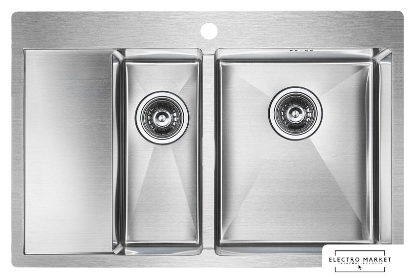 врезная на столешницу/врезная вровень со столешницей/врезная под столешницу, нержавеющая сталь, размеры: 78x51 см, глубина чаши: 20 см, в шкаф шириной от 80 см