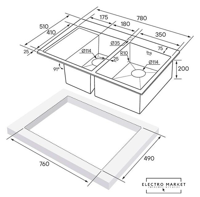 Способ установки | врезная на столешницу, врезная под столешницу, врезная вровень со столешницей |