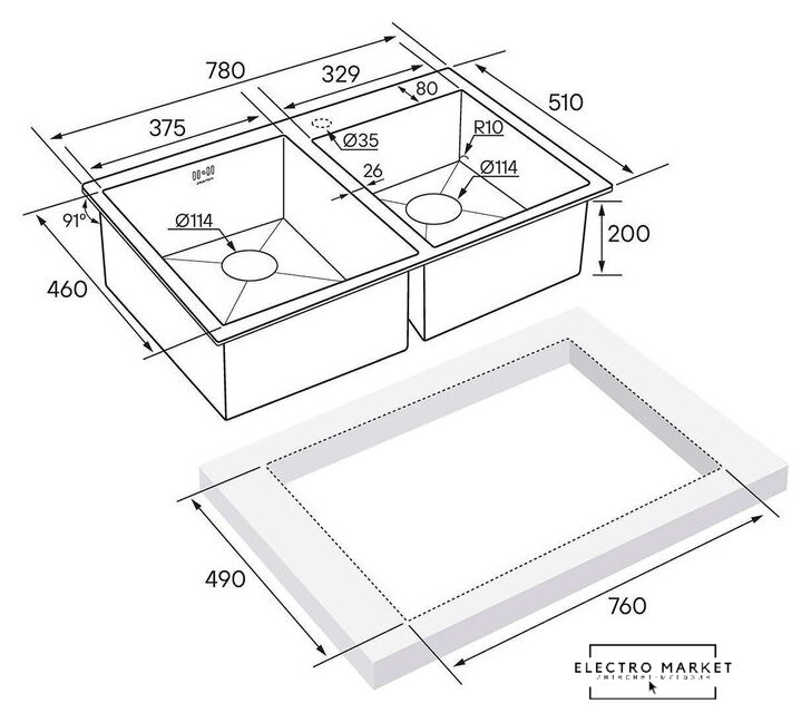 Способ установки | врезная на столешницу, врезная под столешницу, врезная вровень со столешницей |