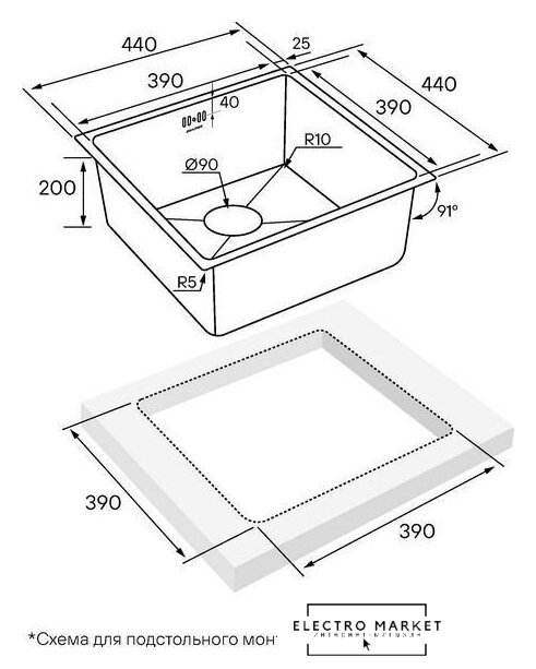 Способ установки | врезная на столешницу, врезная под столешницу, врезная вровень со столешницей |