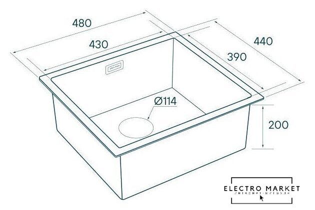 врезная на столешницу/врезная под столешницу/врезная вровень со столешницей, нержавеющая сталь, размеры: 48x44 см, глубина чаши: 20 см, в шкаф шириной от 50 см