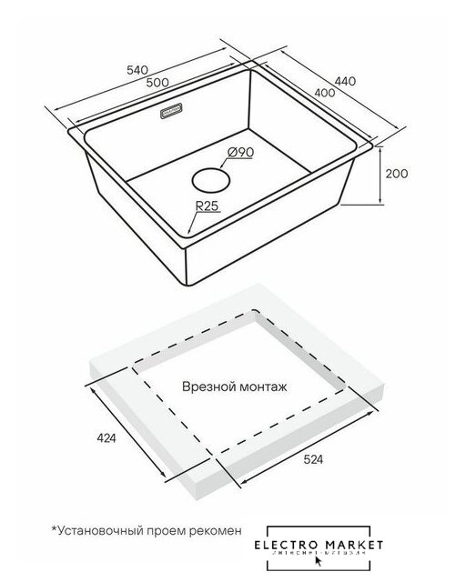врезная на столешницу/врезная под столешницу, нержавеющая сталь, размеры: 54x44 см, в шкаф 60 см