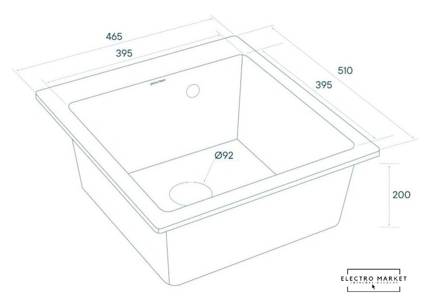 врезная на столешницу, нержавеющая сталь, размеры: 41.5x48 см, глубина чаши: 18 см