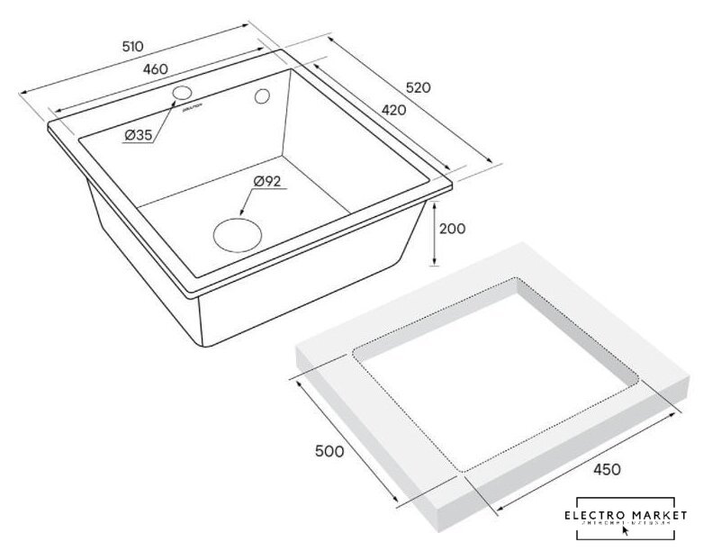 врезная на столешницу/врезная под столешницу, искусственный камень, размеры: 55x46 см, глубина чаши: 20 см, в шкаф шириной от 60 см