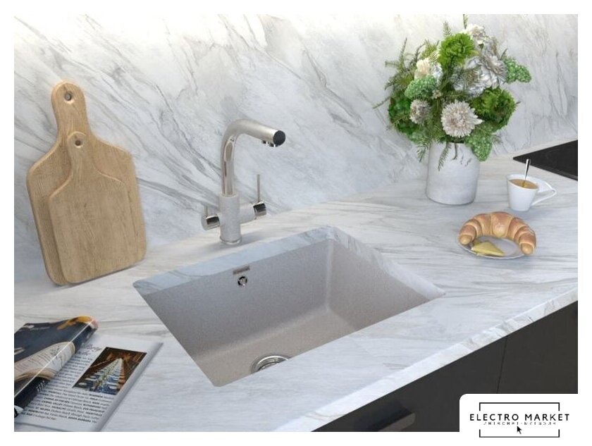 врезная под столешницу, кварц, фактура: матовая, размеры: 55x45 см, глубина чаши: 22 см, в шкаф шириной от 60 см