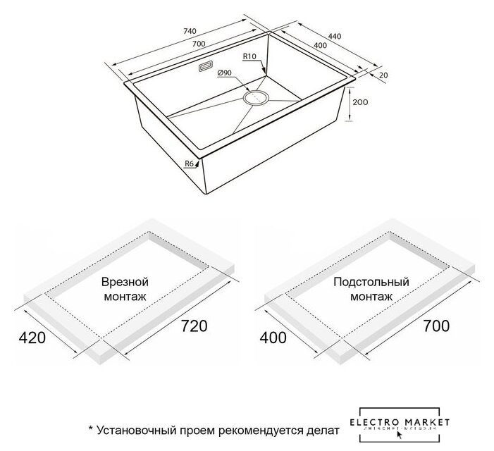 Способ установки | врезная на столешницу, врезная под столешницу, врезная вровень со столешницей |