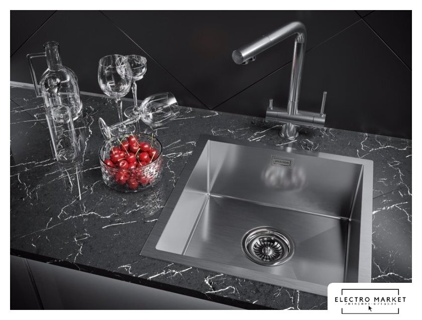 врезная на столешницу/врезная под столешницу/врезная вровень со столешницей, нержавеющая сталь, размеры: 48x44 см, глубина чаши: 20 см, в шкаф шириной от 50 см