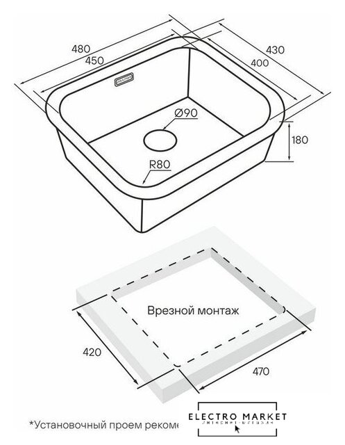 Способ установки | врезная на столешницу, врезная под столешницу |