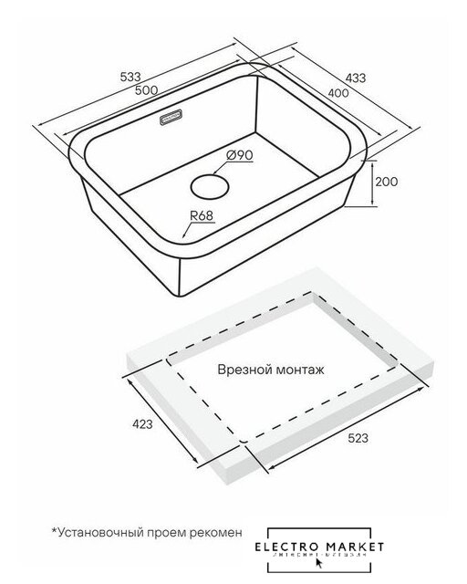 Способ установки | врезная на столешницу, врезная под столешницу |
