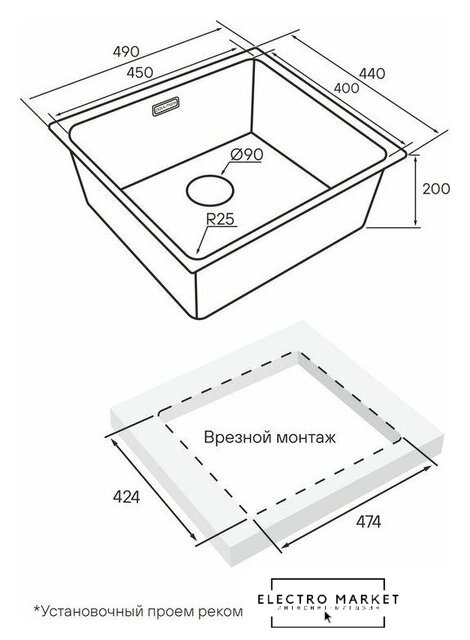 врезная на столешницу/врезная под столешницу, нержавеющая сталь, размеры: 49x44 см, в шкаф 50 см