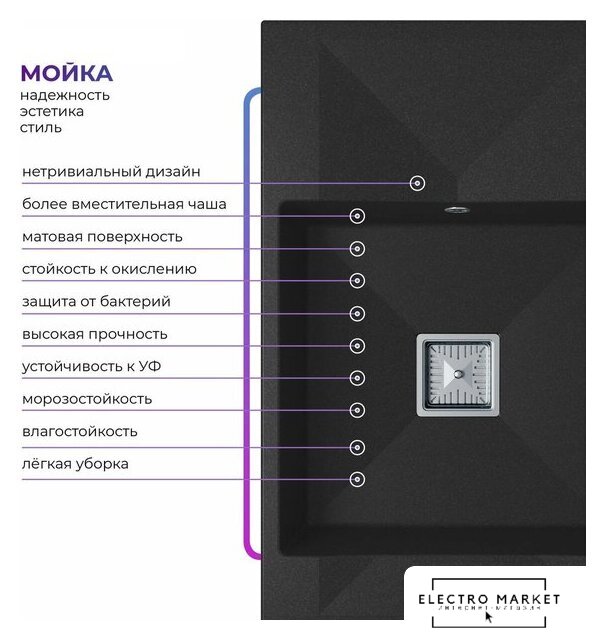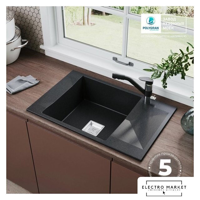 врезная на столешницу, искусственный камень, размеры: 42x55 см, глубина чаши: 20 см, в шкаф шириной от 60 см